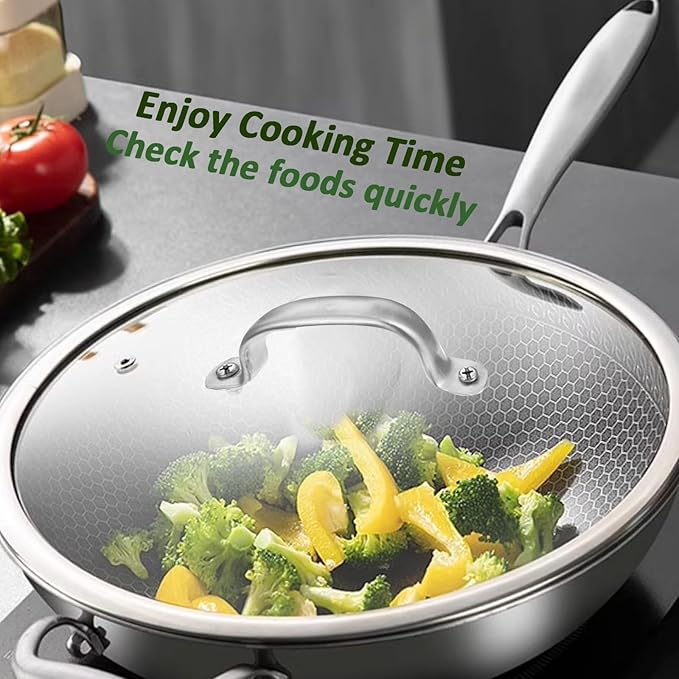 • Clear Glass and Steam Vent: Enjoy the ease of monitoring and checking your cooking through the clear glass,The steam vent ensures safe pressure release, preventing spills and messes in your kitchen. The rim provides an excellent seal, making it suitable for use with iron and cast cookware.