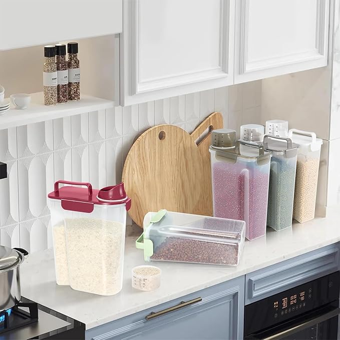 • MULTI-PURPOSE STORAGE : Our pet food container is suitable for storing dog food、cat food、bird seed、fish food、rice、 dry food、cereals、oats、flour and other large and small grains, as well as washing powder used at home. It is also a good choice.