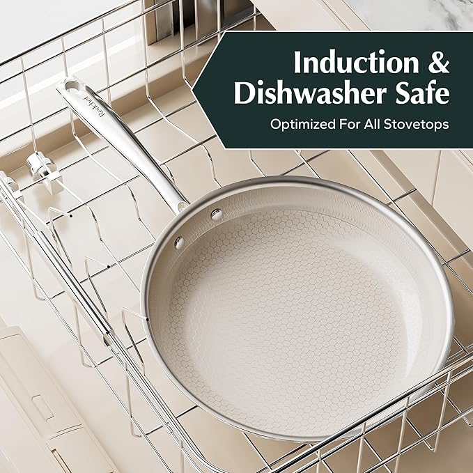 • BV mark Hybrid Nonstick Surface: Laser-etched hexagonal design ensures optimal food release and scratch resistance