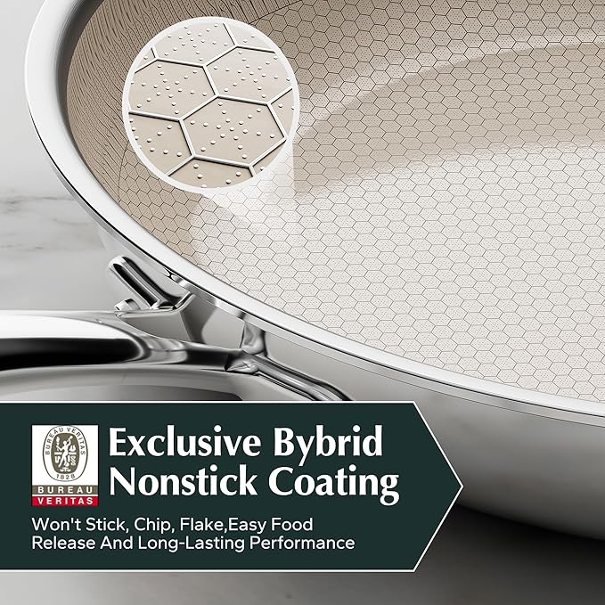 • BV mark Hybrid Nonstick Surface: Laser-etched hexagonal design ensures optimal food release and scratch resistance