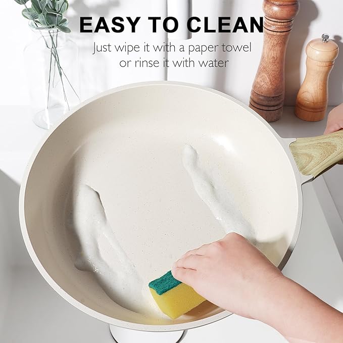 • Ceramic Non Stick - Food slides off effortlessly, less oil needed for healthier cooking with this ceramic pot and pan