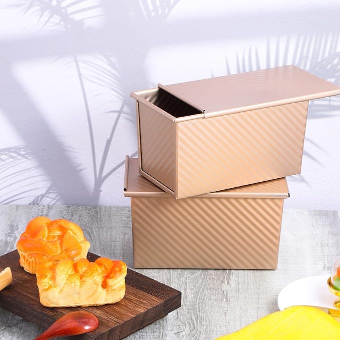 2 Pcs Pullman Loaf Pan with Lid, Non-Stick Rose Gold Bread Loaf Pans for Homemade Bread 1 lb Carbon Steel Bread Toast Box with Cover for Bakeware Bread Toast Oven Baking