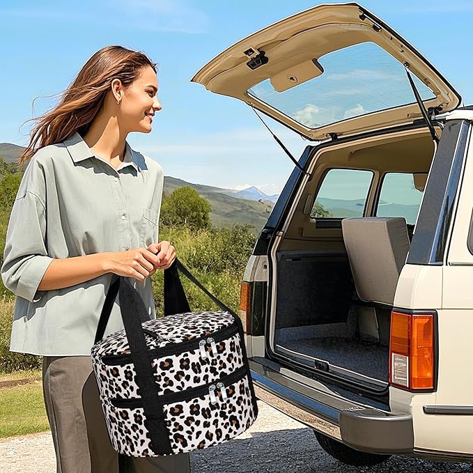 Round Double Insulated Casserole Carrier, Pie Carrier Bag, Portable Casserole Carrier for Hot or Cold Food Lunch Tote, Lunch Bag for Parties Picnic, Fits 12.5" Baking Dish, Leopard