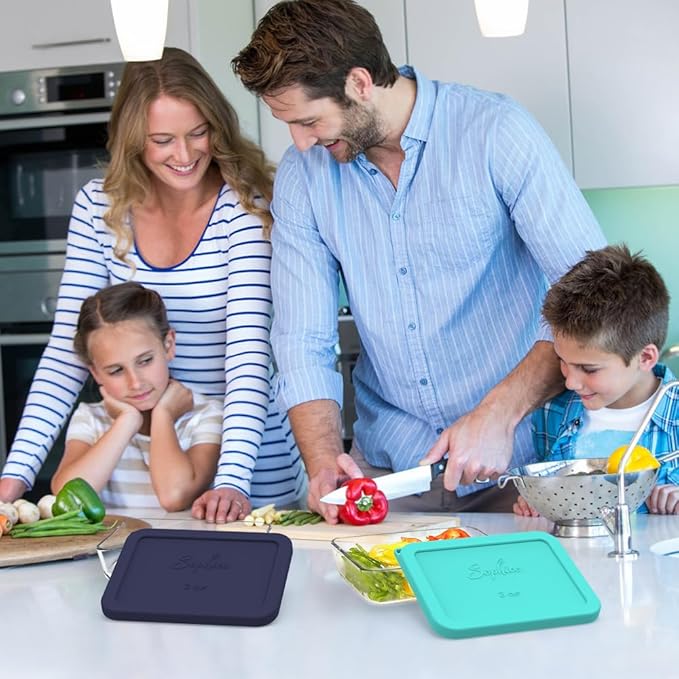 Sophico 3 Cup Rectangle Silicone Storage Cover Lids Replacement for Pyrex 7210-PC Glass Bowls, Container not Included (MINT, 1 Pack)