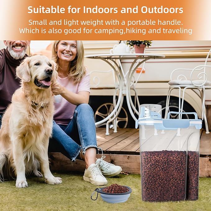 • Collapsible Bowl for Pets:Our dog food storage container is equipped with a high-end foldable pet food bowl. The silicone material is durable and easy to carry, making it a good helper for outings.