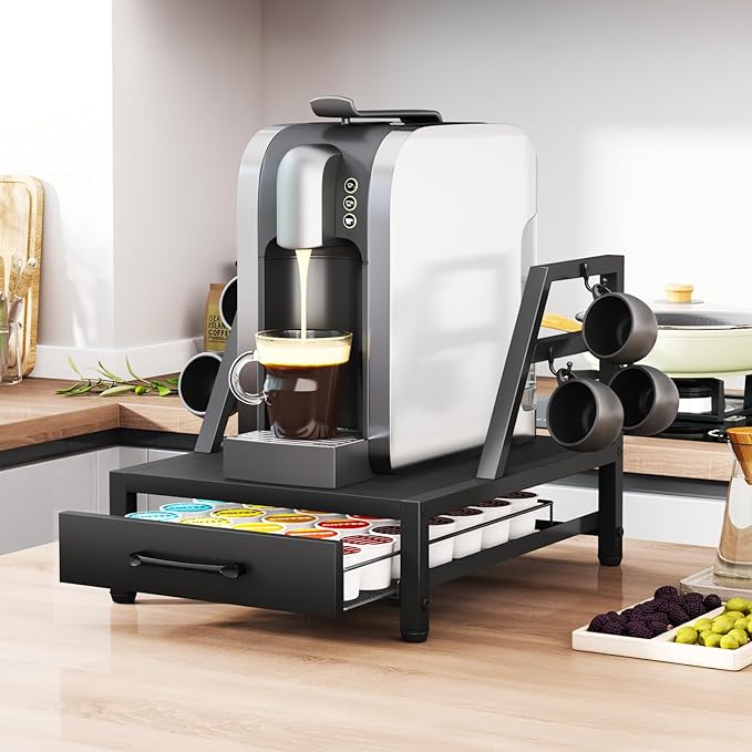 • [1-Tier Coffee Pod Drawer with Coffee Machine Top] Designed for practical use, this coffee pod holder supports your coffee maker on top while the bottom drawer holds up to 35 pods. It’s the ultimate coffee pod organizer for kitchen counters—smart, sleek, and space-saving