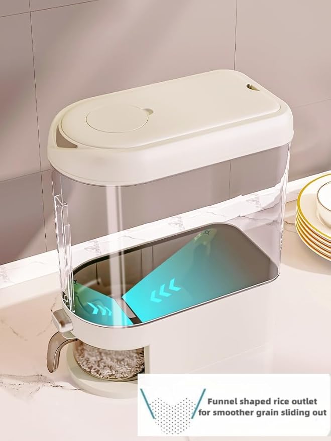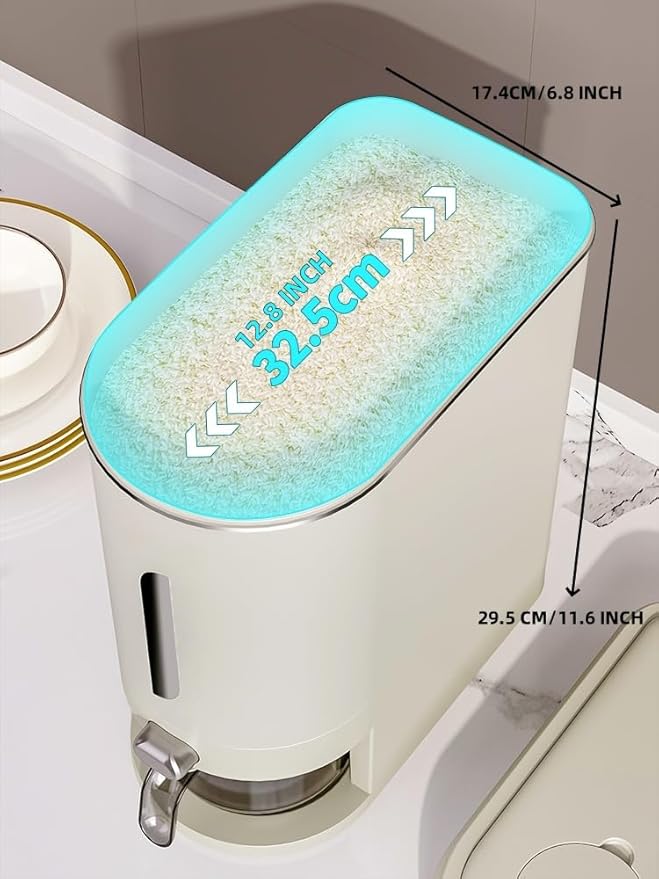 • Well Made:The rice container paired with classic white and sleek look make it suits a variety of home style,Its compact design of barrel body(Size: 12.8" Lx6.85"Wx11.61"H) allows for easy organization and storage in the kitchen without occupying too much space,it will become a good helper in your life.