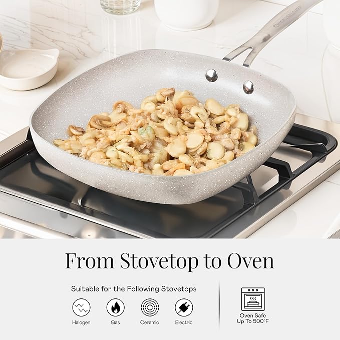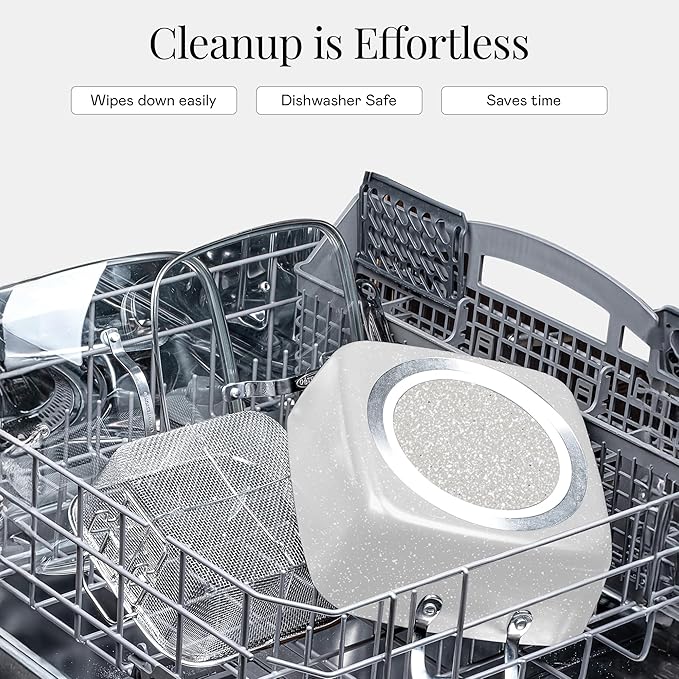 • EASY TO CLEAN: Granitestone cookware is designed for an effortless wipe down after using and is completely dishwasher safe allowing you to simply throw your cookware and bakeware in the dishwasher after using for a quick and easy cleanup experience.