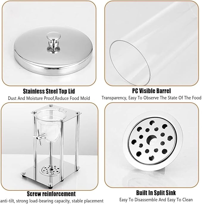 • Keeps Food Fresh: The airtight seal ensures your dry foods stay fresh and safe from moisture or pests. This dispenser is ideal for storing rice, beans, nuts, and other dry goods for extended periods.