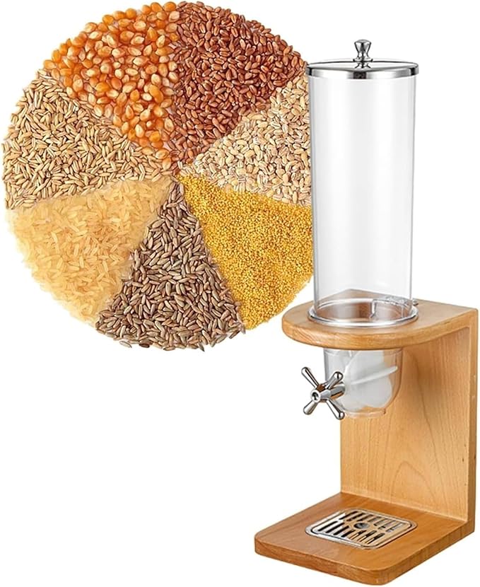 3.5L/7L/10.5L Dry Food Dispenser, Triple-Head Cereal Storage Container with PC Barrel and Wood Base for Rice, Candy, Beans, and Nuts(Single head)