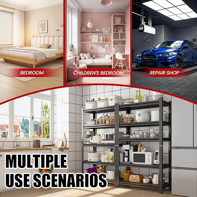 • 【Easy to Assemble in 10 Minutes】We provide you with instructions and assembly video to make the shelves assembly easier. With special interlocking design, you can quickly assemble the heavy duty storage shelves in just 10 minutes. With no nuts or bolts required, you can quickly assemble each individual sturdy storage shelf. To help you assemble quickly, we provide you with a hammer and a pair of gloves.