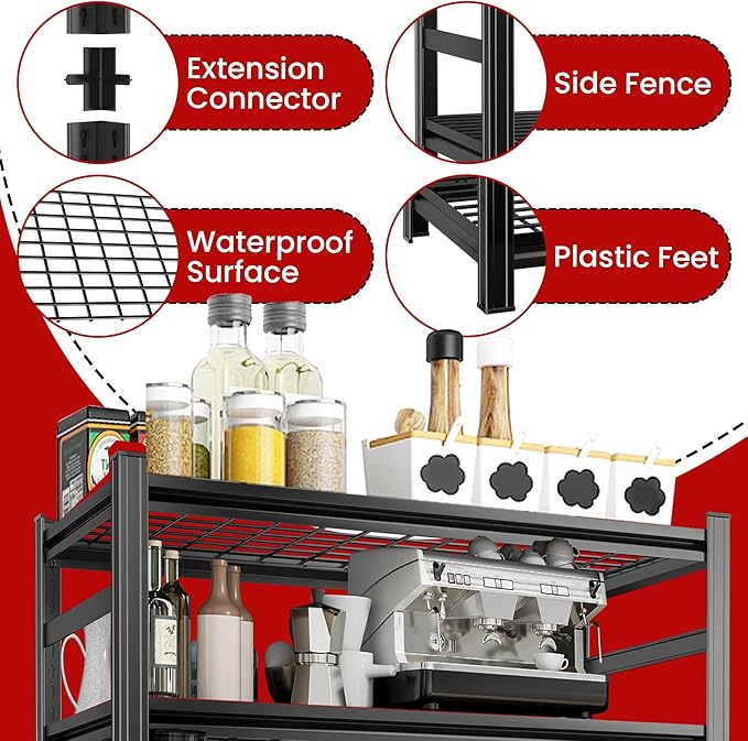 Wire Storage Shelving Unit, 5 Tier Adjustable Metal Shelves, Kitchen Shelves Metal Organizer Wire Rack, Industrial Utility Shelf Rack for Kitchen, Laundry Room, Pantry, Warehouse