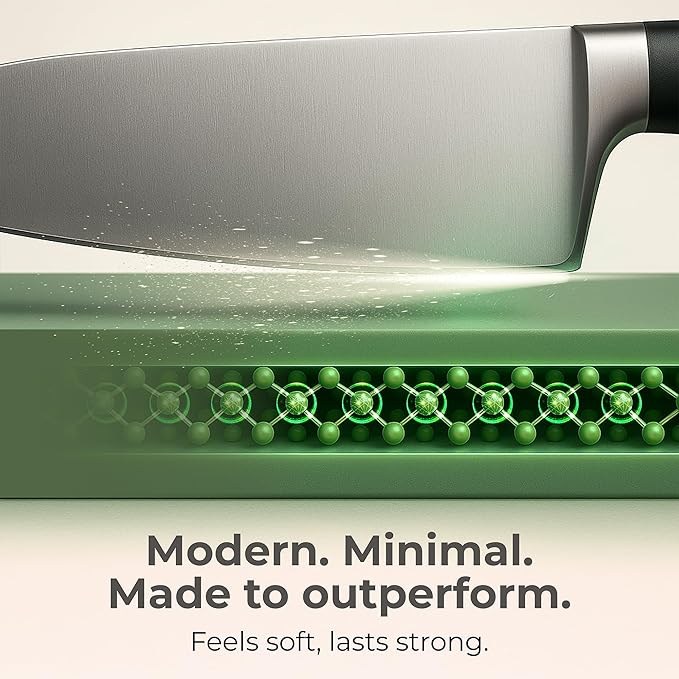 • Softer Yet Durable: Engineered with an ideal balance of softness and strength, offering the flexible feel of silicone cutting board with the long-lasting durability of plastic cutting board.