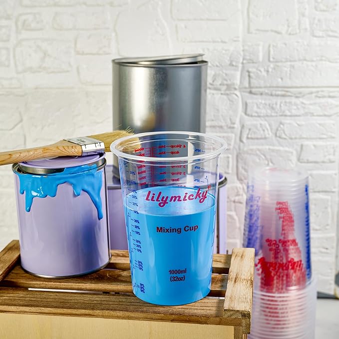 • Multi-purpose Cup: Easily measure paints, epoxy, craft dyes, or any liquids. Perfect for automotive paints, resins & acrylic projects. Loved by professionals and DIYers alike. This 32 oz plastic mixing cup handles all your mixing & measuring tasks
