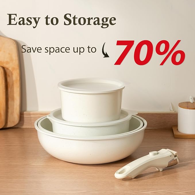 UCClife 24-Piece Nonstick Cookware Set - PFOA/PTFE Free Non-Toxic Pots & Pans, Detachable Handles, Oven & Dishwasher Safe, Scratch Resistant