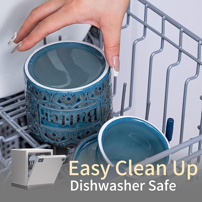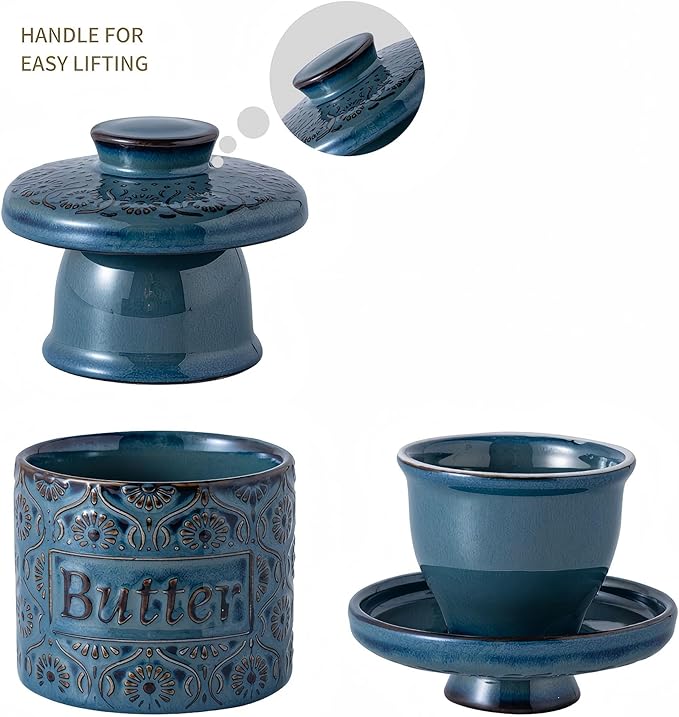 • Premium Ceramic: The French ceramic butter crock with lid are beautifully crafted, made of high quality ceramic materials and healthy glazes, safe and wear, no lead or other harmful substances, providing you with peace of mind while using butter crock.