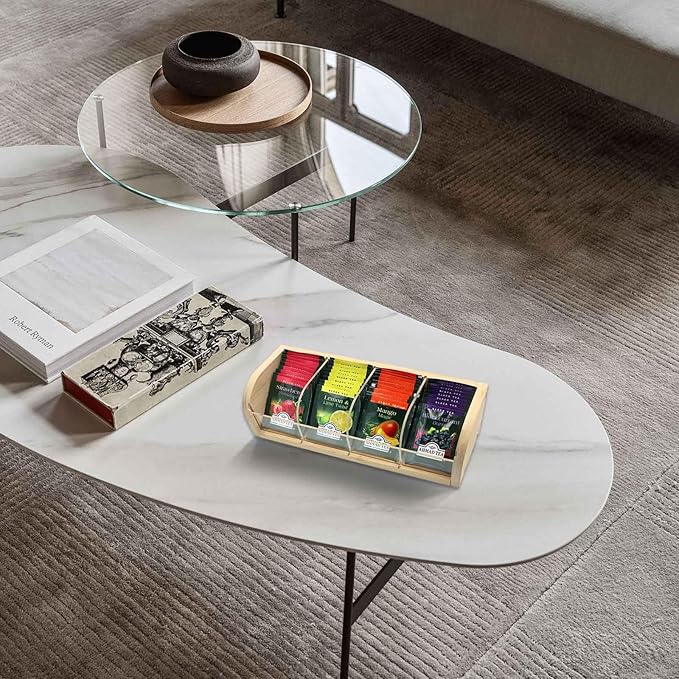 • 【Special Design - Large Rounded Corner Design】The transparent acrylic divider provides a clear view of your tea bags, while also making it easy to take the tea bags you need. The smooth bamboo surface has no sharp edges, making it safe to use and adding to its overall aesthetic appeal.