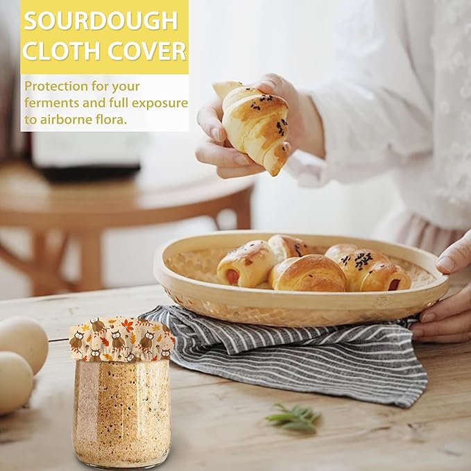 Owl Bird and Leaves Cloth Covers for Sourdough Starter Jar,Reusable Lid Top Cover Bread Fermentation Baking Supplies for 3-4 Inch Jar Mouth