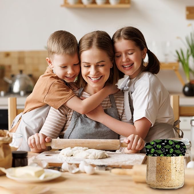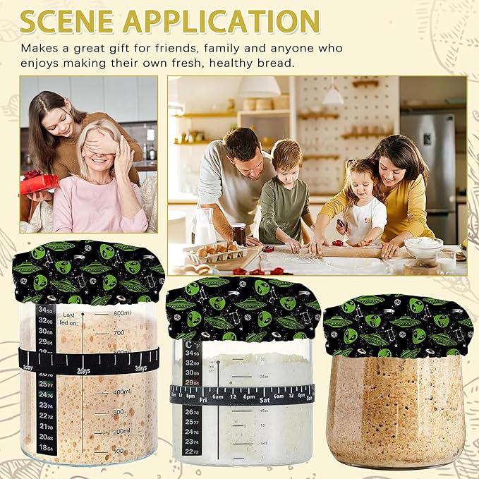 Sourdough Starter Jar Covers,5-Pack Reusable Alien Galaxy Cloth Lids for 3-4 Inch Jars,Ideal for Kombucha Kefir or Cheese Fermentation