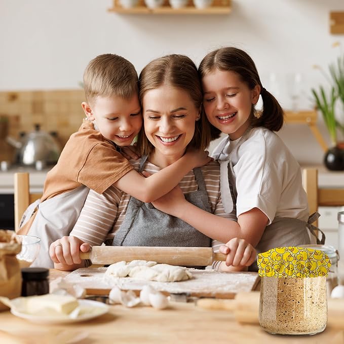 Cute Yellow Ducks Sourdough Starter Jar Covers Reusable,Breathable Fabric Lids for Mason Jars,Wide Mouth and Regular Mouth(5 Pack)