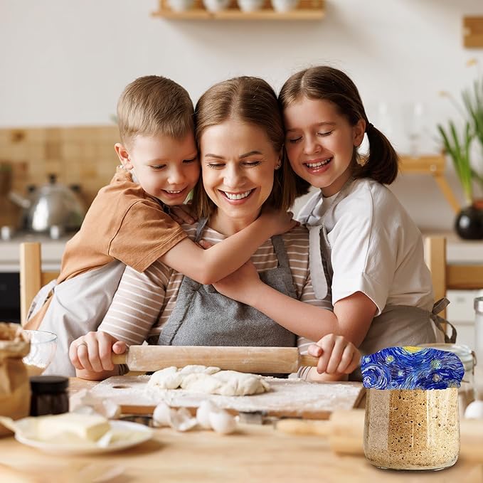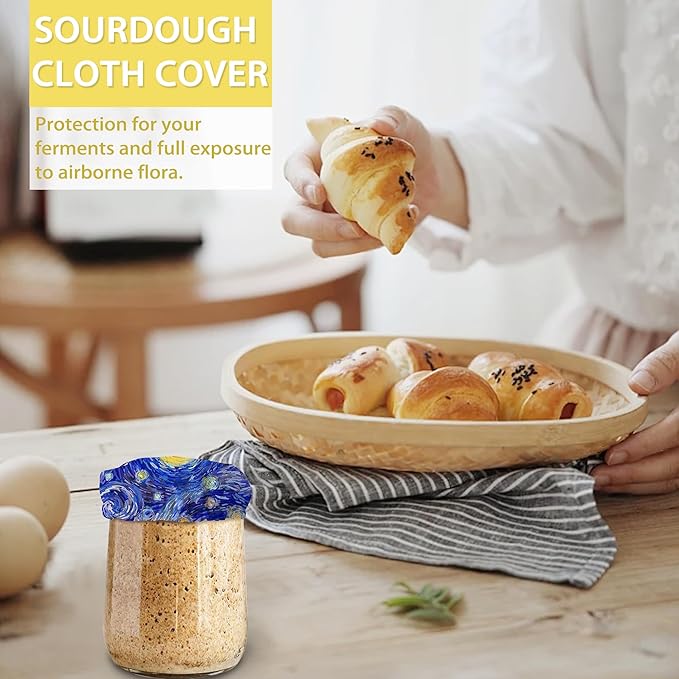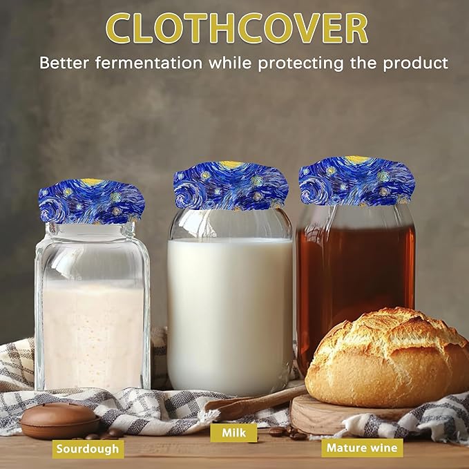VinCent Van-Gogh Starry Night Sourdough Starter Jar Covers Reusable,Breathable Fabric Lids for Mason Jars,Wide Mouth and Regular Mouth(5 Pack)