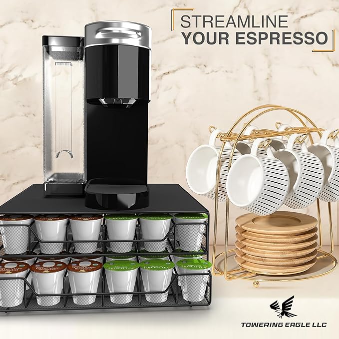 • - Durable Construction: Built to last, this coffee pod organizer can support the weight of your espresso machine, with a rust-resistant iron powder coating for lasting beauty.