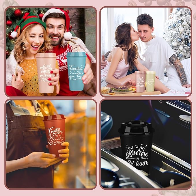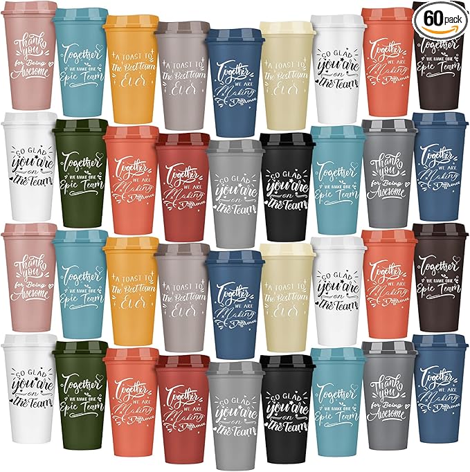 Pickmesh 60 Pcs Employee Appreciation Gifts Christmas Thank You Gift for Team Building 16 oz Teacher Plastic Coffee Cup with Lid Inspirational Travel Tumbler for Coworker Staff Pastor (Varicolored)