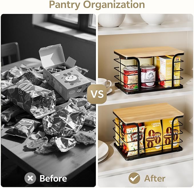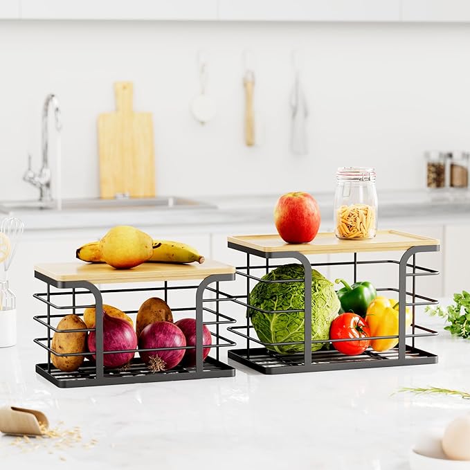 • Wide Applications:Can be placed on kitchen countertops, cabinet shelves, and pantry organizers for storing potatoes, onions, snacks, and more—serving as both kitchen organization and kitchen decor.Also suitable for under the sink in the kitchen and bathroom, laundry room organization and storage, etc