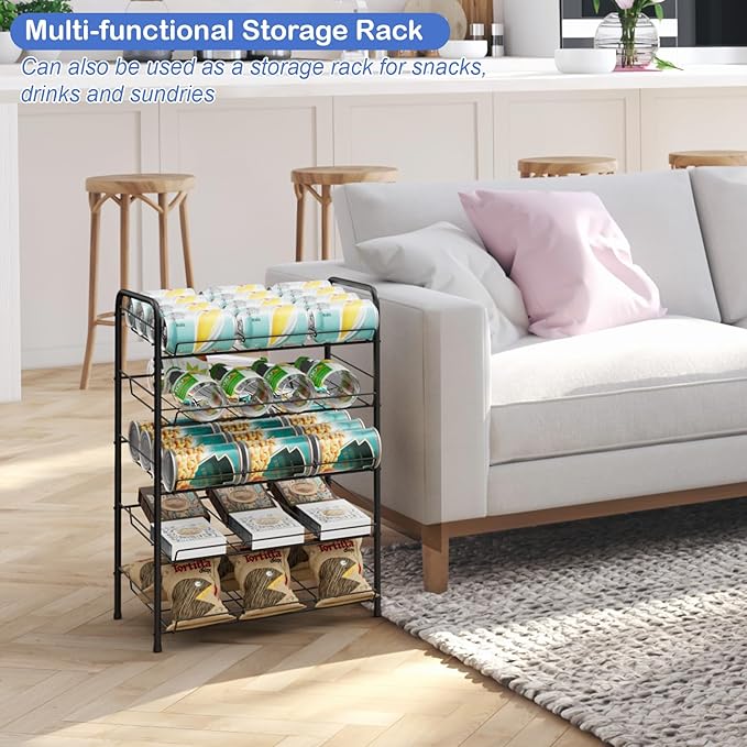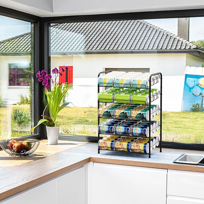 • 【5 Tier Can Organizer】This can storage organizer pantry can hold up to 60 variety-size cans/jars(Each tier can store up to 12 cans), which is a reliable can organizer for the pantry shelf, kitchen cabinet, and countertop.