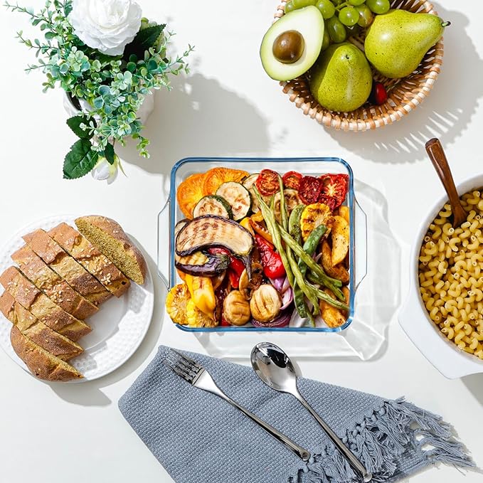NUTRIUPS 7.5x7.5in Glass Baking Dish for Oven 2-pack, 42oz Square Cake Pans Glass Casserole Dishes for Oven