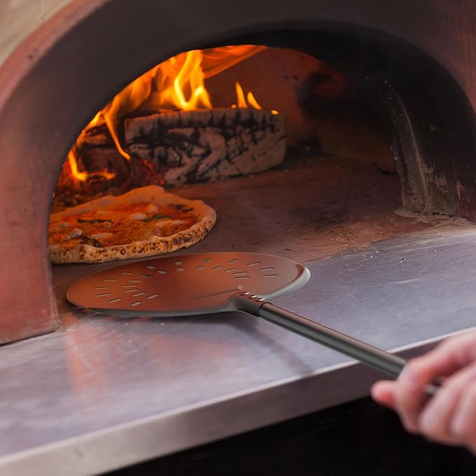 • Heavy-Duty Aluminum: Crafted from premium hard-anodized aluminum, this perforated pizza peel resists oxidation, high temperatures, corrosion, and wear for long-lasting durability