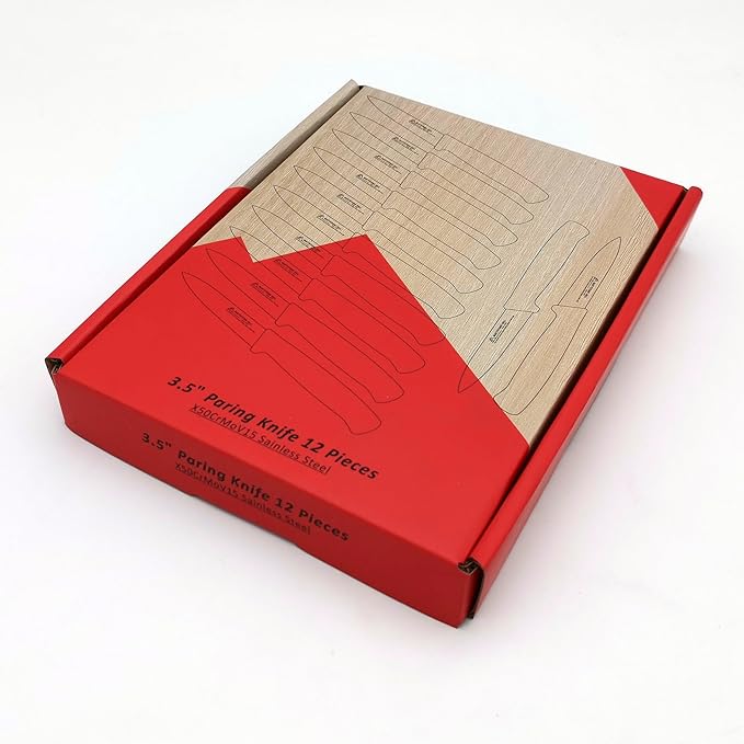 • Multipurpose small kitchen knife: Perfect for paring, cutting, peeling, garnishing, trimming and slicing all kind of food and ingredients. 12 piece set with great value for commercial kitchen in restaurant and hotel, also for home kitchen