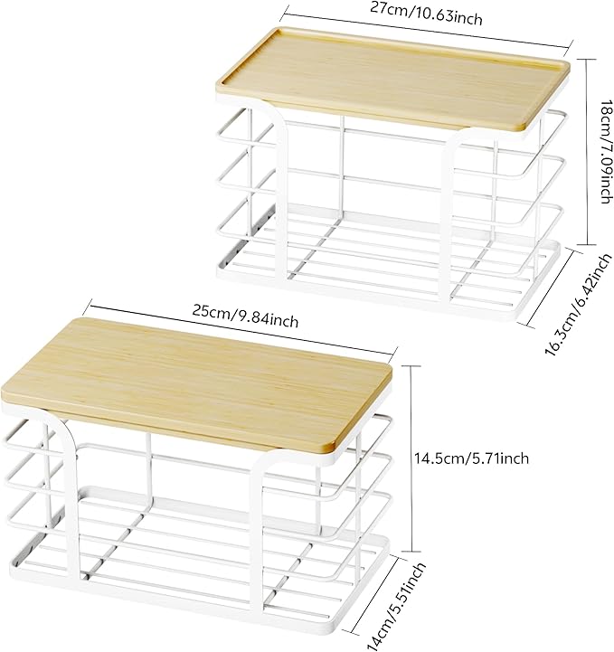 • Wide Applications:Standard size basket frame and bamboo top design make it perfect for multiple uses. Use it on kitchen countertops, on cabinet shelves and in the pantry to store potatoes and onions, etc. Also suitable for under the sink in the kitchen and bathroom, laundry room organization and storage, etc