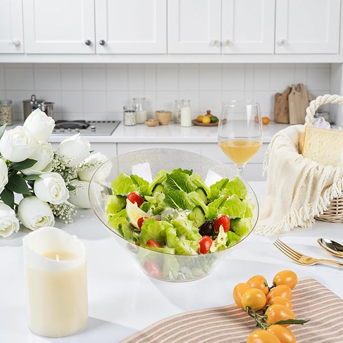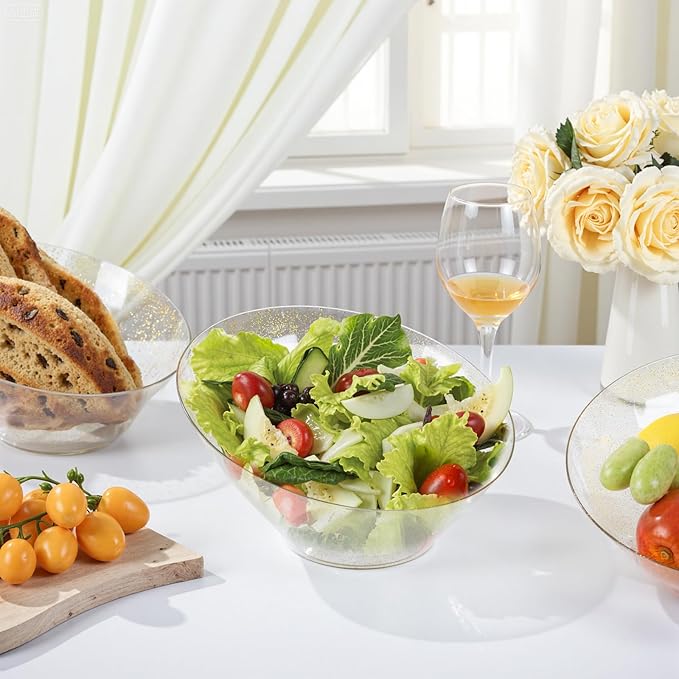 bUCLA 12 Pack Gold Glitter Plastic Serving Bowls - 54 OZ Angled Serving Bowls Disposable for Chip,Candy, Snack,Salad & Fruit - Ideal for Party, Wedding & Thanksgiving