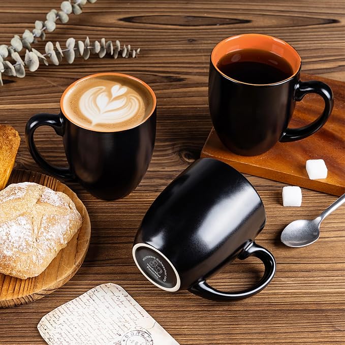 • Comfortable Grip & Sleek Matte Black Style: Featuring an ergonomic, easy-grip handle for a secure hold and a smooth rim for enjoyable sipping. The modern matte black exterior adds elegant style to any table, while the wide, stable base prevents spills.