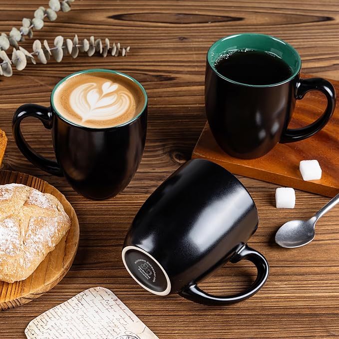 • Comfortable Grip & Sleek Matte Black Style: Featuring an ergonomic, easy-grip handle for a secure hold and a smooth rim for enjoyable sipping. The modern matte black exterior adds elegant style to any table, while the wide, stable base prevents spills.