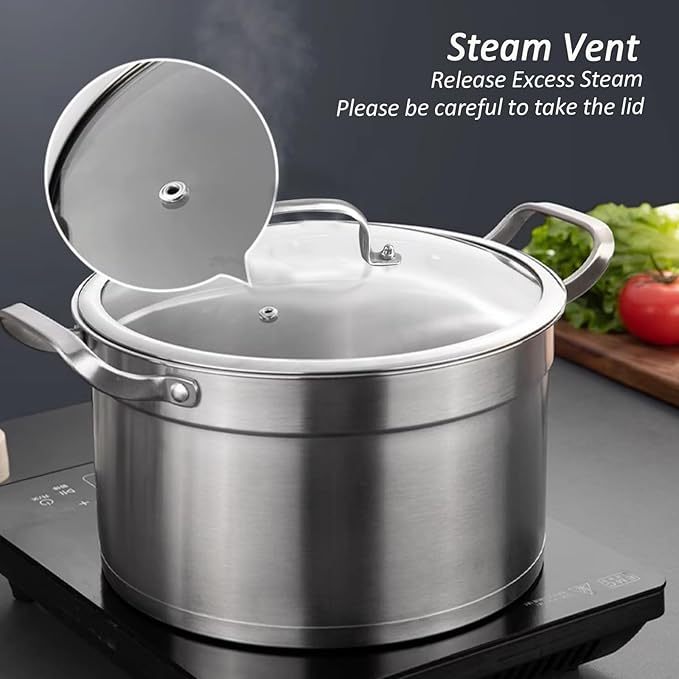 • Clear Glass and Steam Vent: Enjoy the ease of monitoring and checking your cooking through the clear glass,The steam vent ensures safe pressure release, preventing spills and messes in your kitchen. The rim provides an excellent seal, making it suitable for use with iron and cast cookware.