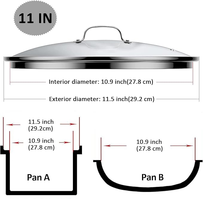 • Versatile&Large Size Available: Our lids fit a range of cookware materials and sizes, including pots, pans, skillets, and more. They fit 11, 12, and 13 inch cookware, whether it's made of iron, cast, or other materials. you will never go through the hassle of storing multiple covers.