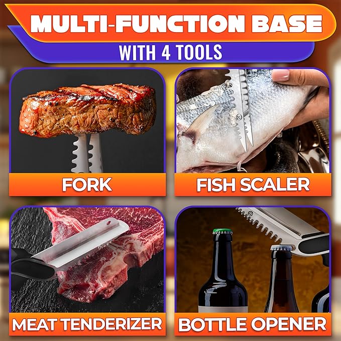 • Multi-Use Kitchen Gadgets: Cut greens, portion chicken, open bottles with the built-in bottle opener, or slice on the go. Serves as utility scissors heavy duty, vegetable chopper and fish scissors