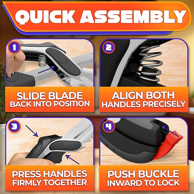 • Controlled Handling With Spring Assist: Soft handle and spring hinge reduce hand tension. These scissors kitchen shears lock for storage, supporting cooking scissors for kitchen use at home or outdoors