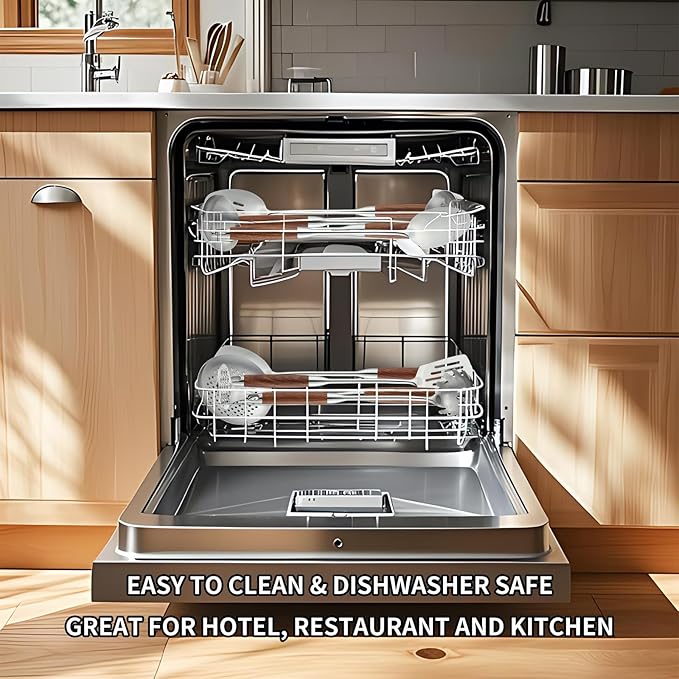 • Easy To Use and Store: The edges of the handle are rounded, smooth, and heat-resistant, so it won't burn your hands. With big hanging holes, easy to be hung to save space. our stainless steel cooking utensil tools can easily prevent dirt and grime from hiding, easier to clean. hand wash or dishwasher safe.