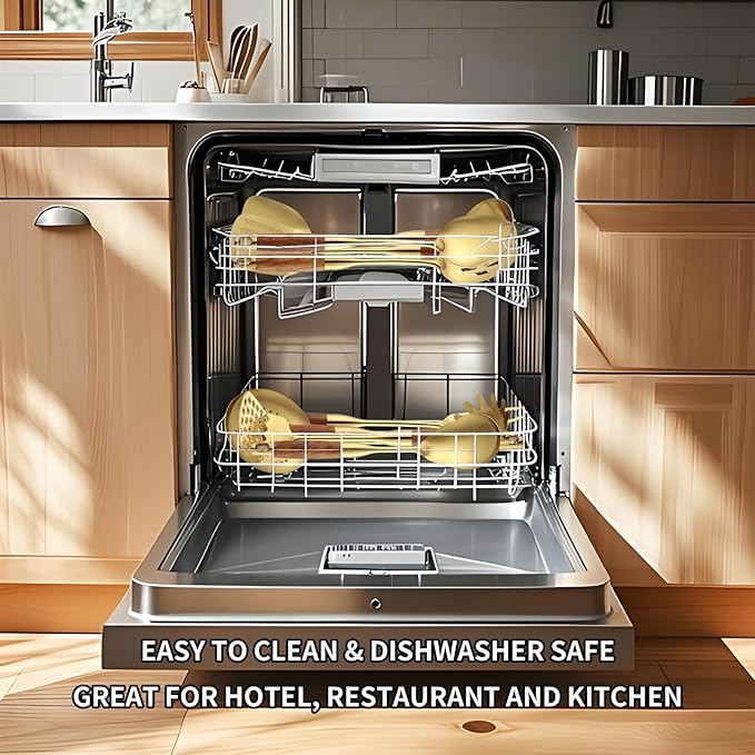 • Easy To Use and Store: The edges of the handle are rounded, smooth, and heat-resistant, so it won't burn your hands. With big hanging holes, easy to be hung to save space. our stainless steel cooking utensil tools can easily prevent dirt and grime from hiding, easier to clean. hand wash or dishwasher safe.