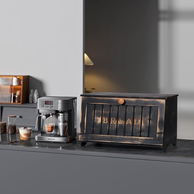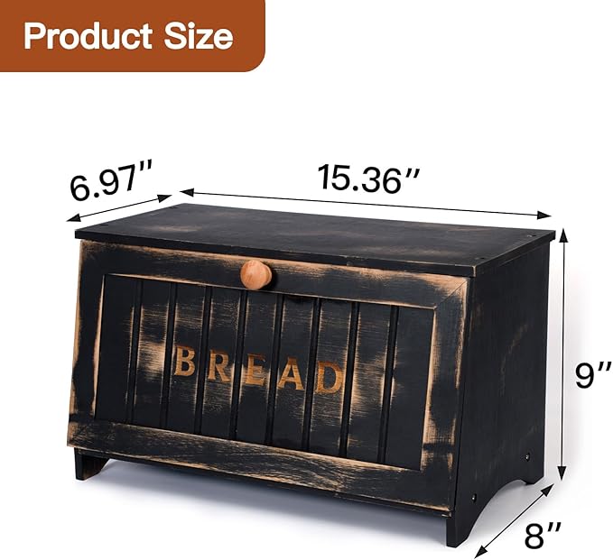 • STYLISH AND UNIQUE DESIGN: Crafted from high-quality bamboo with a hand-distressed finish, each bread bin boasts a unique vintage charm. Add a rustic farmhouse touch to your kitchen decor with this standout wooden bread box