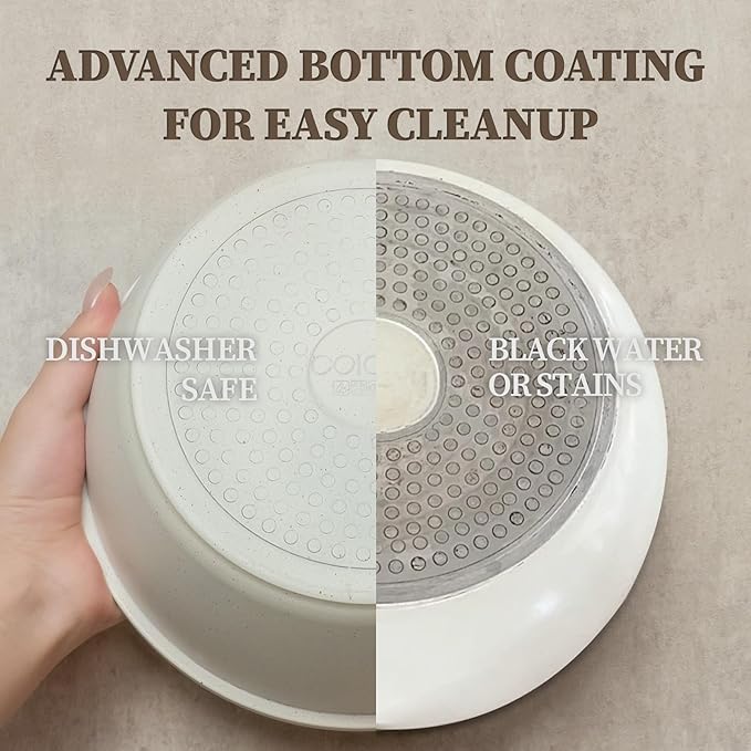 • Innovative Dual-sided Coating for Effortless Cleanup- The outstanding internal and exterior coating of our ceramic cookware set allows food residue to slide off with just an effortless wipe, making cleanup a breeze and saving you cooking time. Dishwasher-safe to free your hands after cooking