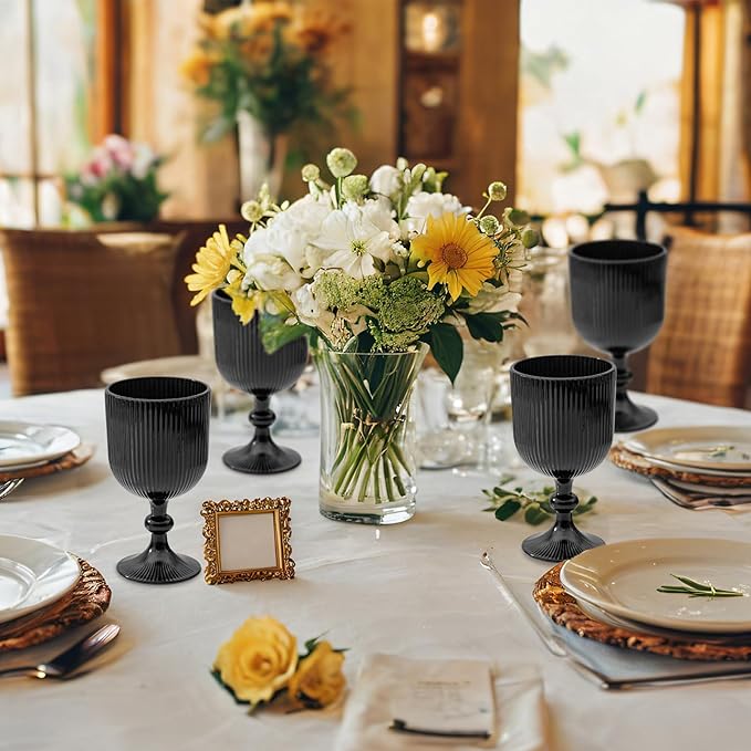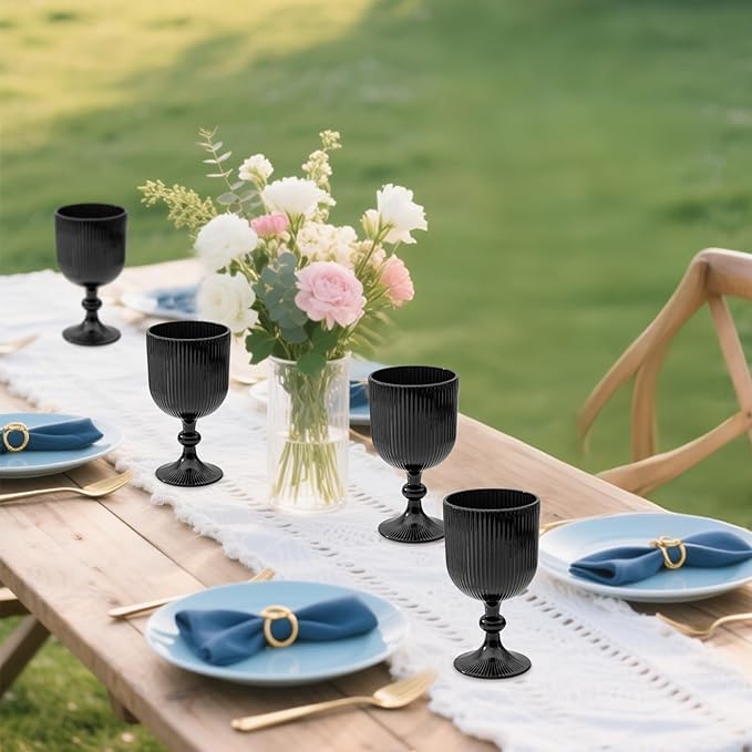 24 Pcs Black Vintage Wine Glasses, 11 Ounces Colored Glass Water Goblets, Unique Embossed Pattern High Clear Stemmed Glassware Wedding Party Bar Glass Drinking Cups Fancy Glasses Set Hand Wash Only