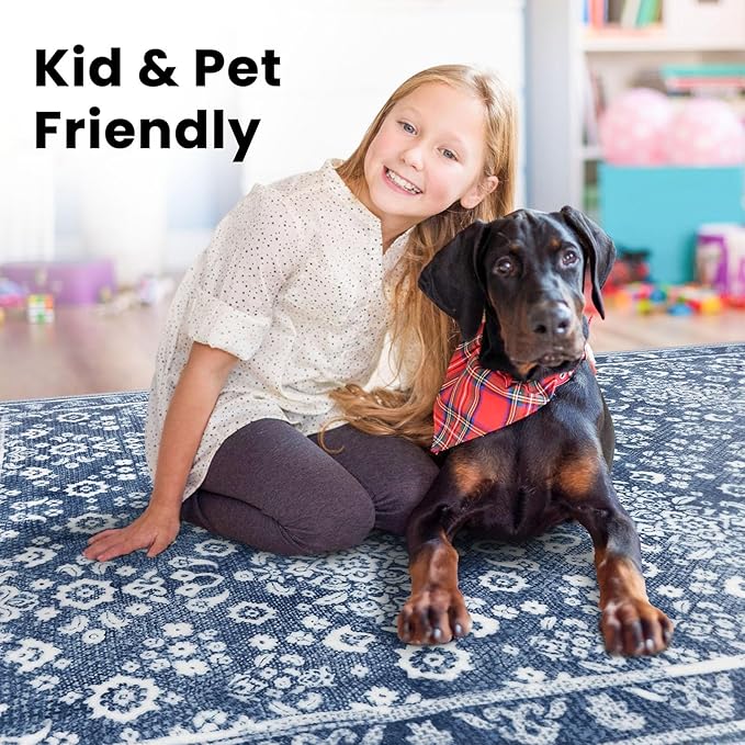 • Classic Printed Blue Floral Rug: This rug runner features a dusty blue and white geometric floral pattern, offering a soft, vintage-inspired look that brings timeless charm to both traditional and modern spaces; Please note: Colors may appear slightly different depending on lighting or screen settings