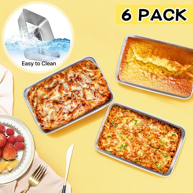 6 Pack Loaf Pan for Baking Bread, 304 Stainless Steel Bread Loaf Pan Meatloaf Pan for Homemade, Banana, Lasagna Cake, Brownies, Lasagnas, Oven & Dishwasher Safe