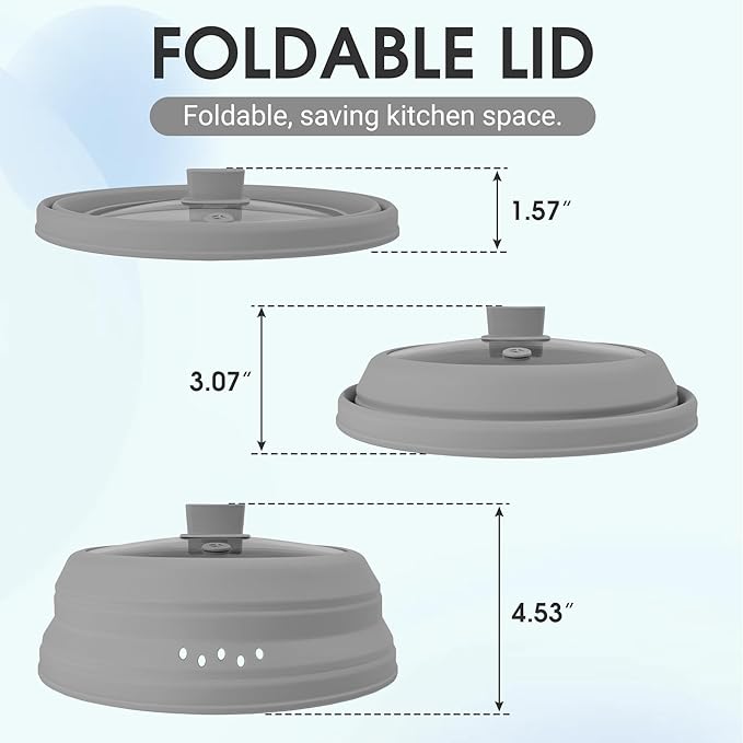 • Collapsible Design: This microwave cover for food features an adjustable height and can be folded into four different shapes, fitting various cookware sizes or needs. When folded, it takes up minimal space, making it easy to store—ideal for small kitchens or homes with limited space.