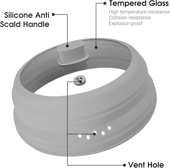 Microwave Splatter Cover Glass Microwave Cover for Food Collapsible Splatter Guard Lid with Silicone Handle for Pot Plate Bowl 9.8 Inch Gray
