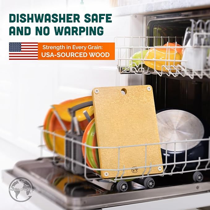 • CUTTING BOARD DISHWASHER SAFE – Keeping your cutting board clean can be challenging, but not with Earth’s Dreams. This board is made with non-toxic materials and is designed to be dishwasher-safe and non-porous, unlike bamboo cutting boards which are often not hygienic or dishwasher friendly.
